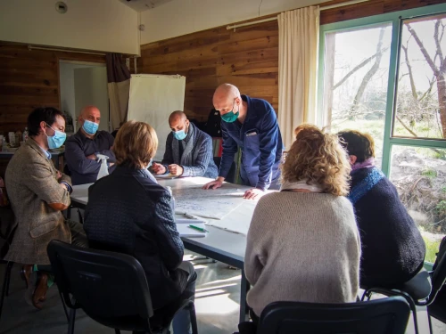 Félix, Nicolas et Pierre, directeurs d’établissements médico-sociaux, Clémentine, formatrice, Valérie, artiste plasticienne, Madame la Maire de Captieux, Sabrina, Notaire, Corinne, bénévole du Secteur Pastoral, Sophie, Jacqueline, Josiane et Françoise, habitantes de Captieux, Cécile, porteuse de projet funéraire, Antoine directeur des services… se sont réunis mercredi 10 mars à la ferme des filles de Captieux. Soit plus d’une trentaine de personnes rassemblées dans les précautions habituelles liées à la Covid-19.